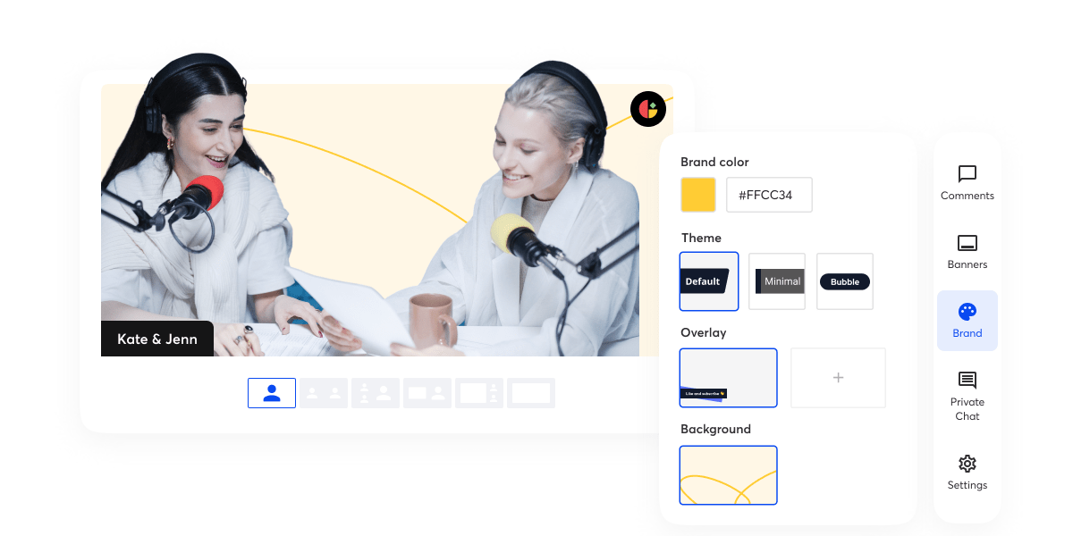 Fully on-brand live streams and recordings